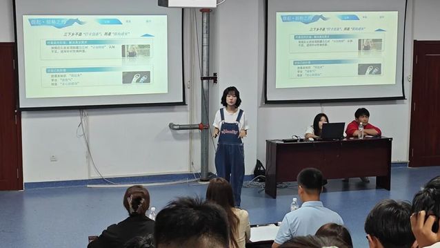 紧接着,谷凯悦与黄新叶两位同学围绕认知、准备、执行、收获四部分展开分享。认知篇阐明三下乡的意义、任务与做法;准备篇介绍队伍组建等要点。最后,她们感慨这段经历让团队从青涩走向成熟,也鼓励更多同学积极投身实践、收获成长。