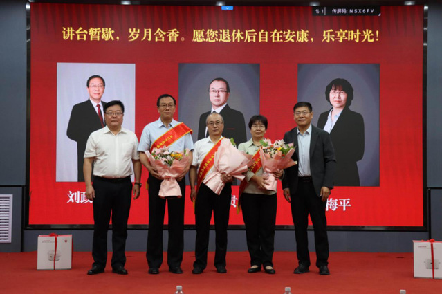第三环节以“表彰先进,致敬芳华”为主题,左彭湘副院长宣读了医学院2025年上半年在教育教学、科学研究、管理服务等方面取得优异成绩的获奖教师名单,学院领导为获奖者颁发了荣誉。随后,党委书记张青为银龄教师献上鲜花,感谢他们不远万里支援西部教育,将宝贵经验和智慧倾囊相授,为学院发展注入了强劲动力。