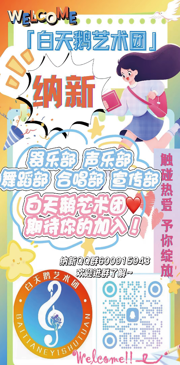 不论你是“艺术大神”还是“小白萌新”,只要心怀热爱、愿意尝试,白天鹅艺术团都欢迎你的加入!让我们一起,在医学的严谨之外,书写青春的浪漫与热烈。