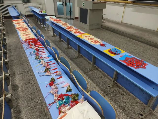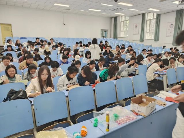 活动前期,在医学院的教室里,一场别开生面的 “福节传香,耆韵锦艺” 手工中国结、剪纸、香包制作有序开展。各色丝线似绚丽的彩虹丝绦,剪纸纸张如洁白的玉笺,香料散发着清幽的芬芳,皆有序摆放。志愿者们围坐在一起,目光专注,悉心学习制作技巧。大家相互交流、切磋,从最初的生疏,到渐渐熟练,一个个精美的中国结、灵动的剪纸作品、香气四溢的香包陆续诞生,为进社区看望独居老人的活动做好了充足准备。