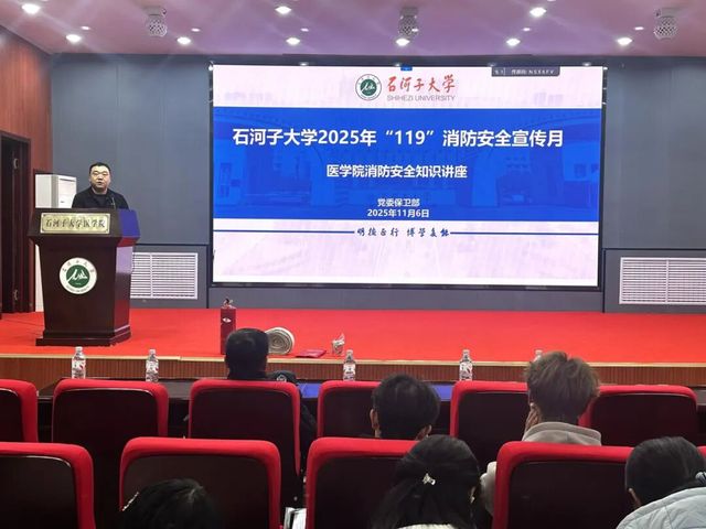 11月是全国消防宣传月,今年的活动主题是“全民消防 生命至上 安全用火用电”,为筑牢校园消防安全防线,普及消防安全知识,提升师生应急处置与自救互救能力,11月6日,我院组织100余名师生在南区学术报告厅参加消防安全专题讲座。本次活动由保卫部、医学院以及石河子大学派出所联合开展,全面护航师生安全。