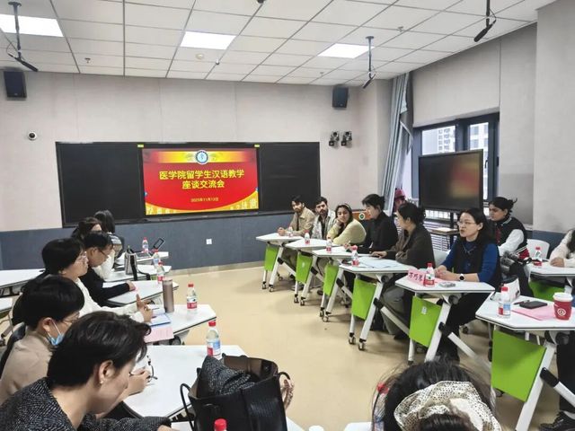 为切实提升来华留学生汉语教学质量,激发学生汉语学习热情,同时深化中国文化传播,医学院于2025年11月13 日在“一带一路” 国际教育中心举办留学生汉语教学座谈交流会。医学院主管留学生教育的万巧琴副院长、全体留学生汉语教师及学生代表共同参会,围绕汉语教学痛点、改进方向展开深入研讨。