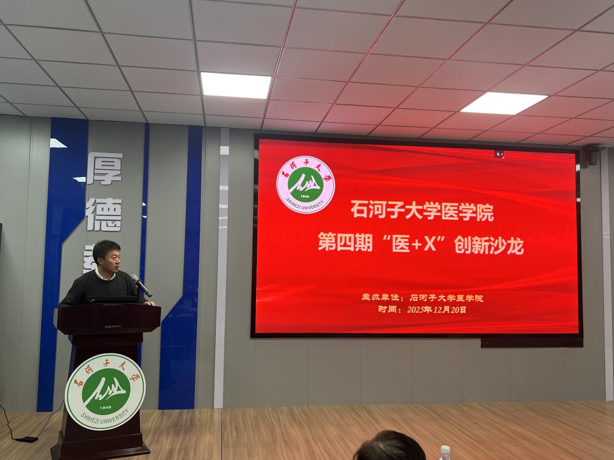 为深入实施创新驱动发展战略,贯彻落实学校关于推进学科交叉融合与有组织科研的部署要求,进一步拓展医药学科与工学、理学等领域的深度对话与合作,2025年12月20日,由石河子大学医学院主办的第四期“医+X”创新沙龙在医学院成功举行。本期沙龙以“医工交叉融合:赋能健康研究与创新转化”为主题,汇聚了来自食品、信息、生命、化学、医学等多个领域的专家学者、青年博士及科研骨干,共话前沿科技,共谋协同创新。