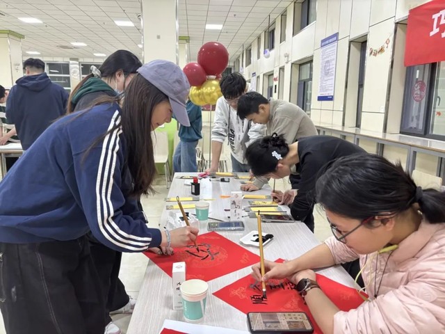 教学结束后,同学们分组协作,各显身手。擀皮的同学动作渐趋熟练,包饺子的同学则创意纷呈,一个个饺子在欢声笑语中逐渐成型,承载着大家对冬至的美好祝愿。现场还特设“毛笔字写祝福”环节,在煮饺子的间隙,同学们提笔蘸墨,书写祝福赠予同窗或师长,将传统文化融入温情传递之中。