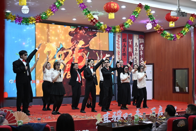 公共卫生学院老师们演绎的舞蹈串烧《男团女团迎春风》,复古与现代交融,点燃了现场气氛。