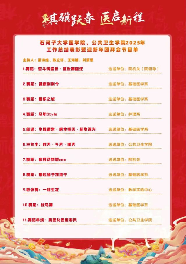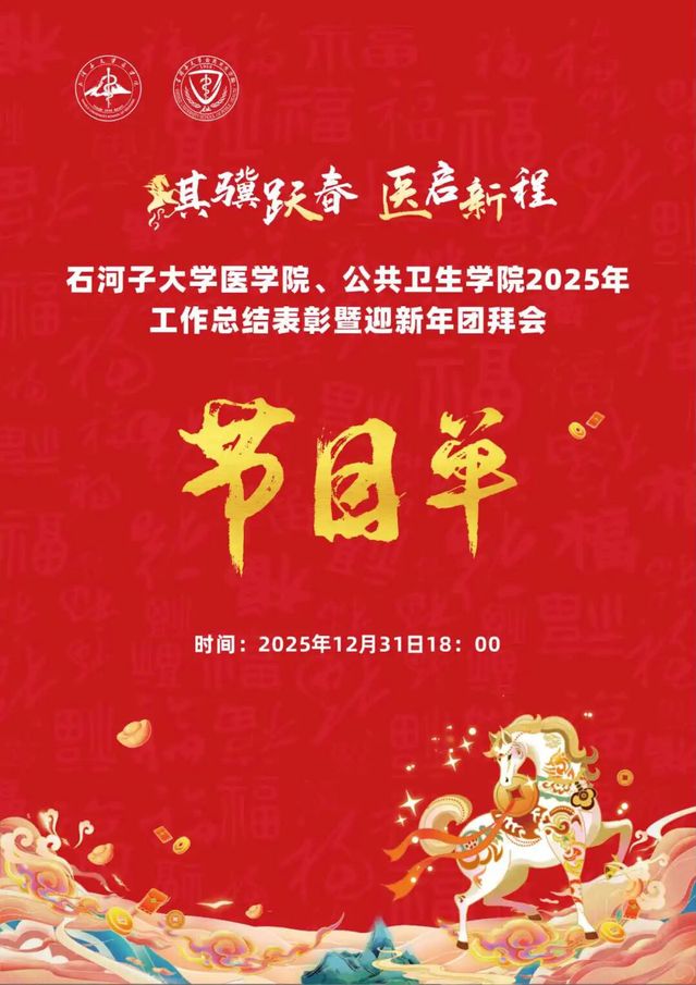 当岁末的钟声渐近,我们即将告别耕耘与收获的2025年,迎来充满希望与憧憬的新一年。值此辞旧迎新之际,石河子大学医学院、公共卫生学院2025年工作总结表彰暨迎新年团拜会如约而至!这既是回望过往、表彰先进的荣誉时刻,也是凝聚医心、共启新程的温馨相聚,更是属于两院师生的年度盛典。