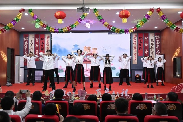 公共卫生学院老师们演绎的舞蹈串烧《男团女团迎春风》,复古与现代交融,点燃了现场气氛。
