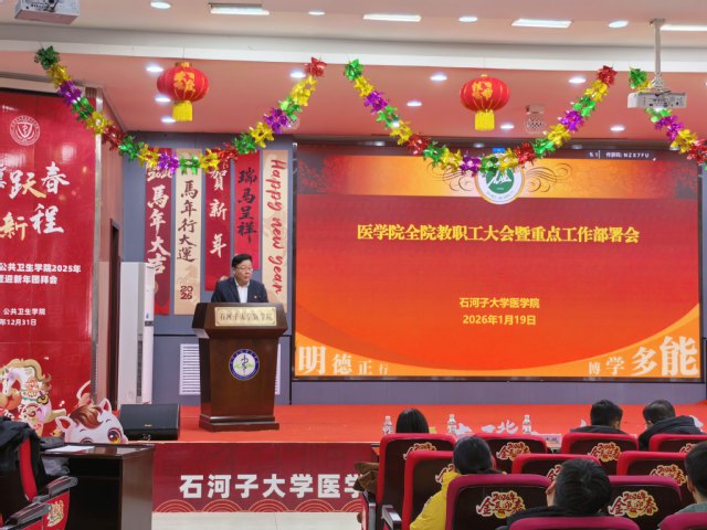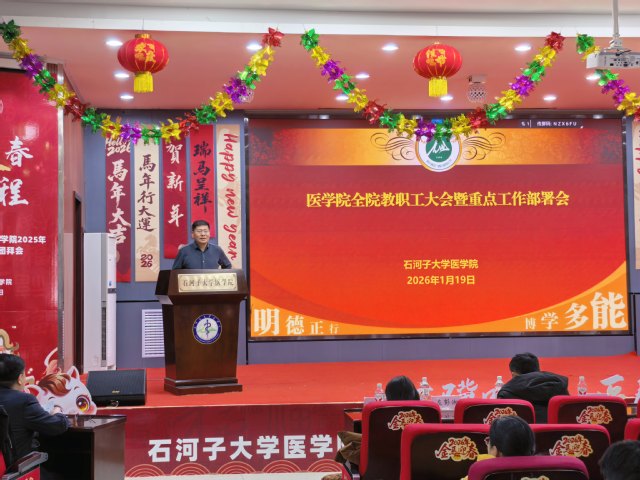 1月19日,石河子大学医学院召开全院教职工大会,部署近期重点工作,明确寒假工作安排和年后发展任务。医学院党委书记张青主持会议,学院领导班子成员与全院教职工参加会议。