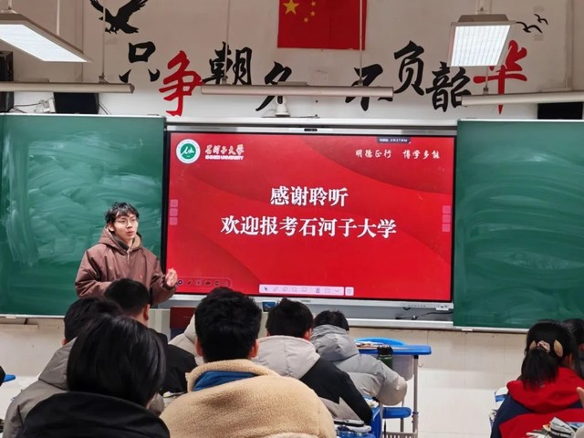 宣讲会现场坐满了好奇的面孔,眼神里有对大学的憧憬,也有对遥远新疆的陌生。我没有先念冰冷的招生简章,而是翻开手机里的照片:春日校园的杏花如雪,夏日玛纳斯河的波光粼粼,秋日层林尽染的校园大道,冬日银装素裹的教学楼。我告诉他们,石河子大学不是地图上遥远的标点,而是一座坐落在“戈壁明珠”石河子市的211工程、“双一流”建设高校,更是无数青年逐梦、成长、扎根的精神家园。
