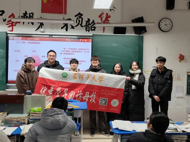 寒假归乡,我带着石河子大学的校徽与招生手册,重返阔别一年的柳州高中。熟悉的香樟、依旧喧闹的操场、黑板上未擦净的公式,瞬间把我拉回高三伏案的日夜。这一次,我不再是埋头刷题的考生,而是以石河子大学学子的身份,回到梦开始的地方,向学弟学妹讲述一段跨越山海的求学故事,传递一份来自边疆学府的温暖邀约。