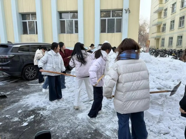 预防医学系团总支走进红山街道33社区,开展健康科普、环境清洁等便民服务,把专业知识转化为服务群众的实际能力;院学生会志愿者开展校园清雪行动,对杏五楼周边、操场等区域积雪全面清理,对自行车摆放进行整理,保障师生出行安全畅通。
