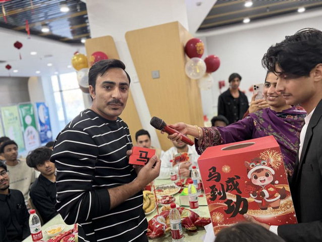 文艺表演间隙,猜汉字互动游戏环节温情登场,成为整场联欢会的欢乐焦点。活动紧扣新春主题,结合留学生汉语学习特点,精心选取“春”“福”“年”“马”“吉”“祥”等与新年紧密相关的文字,兼顾趣味性与知识性,让留学生们在轻松愉悦的氛围中,既感受中华汉字的结构之美,也读懂每个新年汉字背后的吉祥寓意。游戏过程中,同学们踊跃举手、积极抢答,时而凝神思索,时而默契交流,遇到疑惑时相互提醒,猜对答案时欢呼雀跃,现场氛围热烈而温馨。通过这场趣味游戏,不仅有效激发了留学生学习汉语的兴趣,更让大家在互动中加深了对中华新年文化、汉字文化的理解,增进了彼此间的友谊。