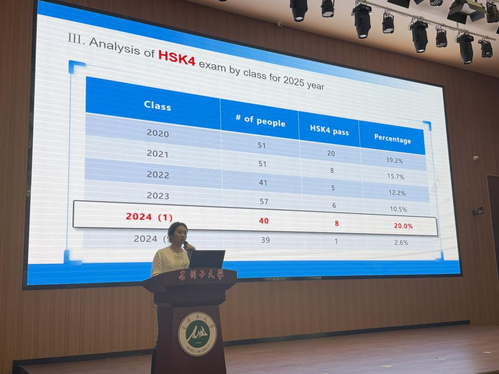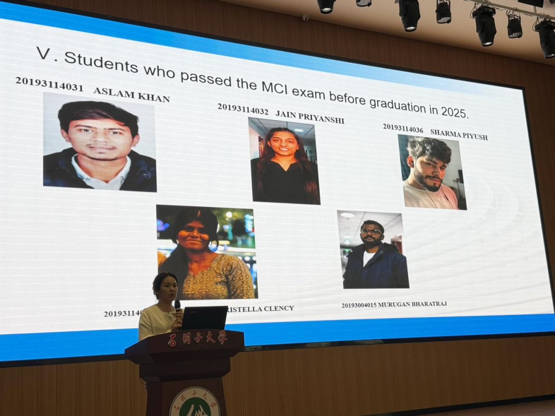 会上,留学生办公室主任奇格汗对上学年工作进行全面复盘总结。她围绕学业成绩整体分析、奖学金评定与发放情况、课堂考勤规范落实、HSK汉语水平考试通过成效、印度医师资格考试通过情况以及各班学费缴纳进度等核心工作,进行了详细通报与深度解读。既充分肯定了全体留学生在过去一学期里,在专业学习与日常管理中取得的进步与成果,也客观指出了当前存在的不足,并明确了具体改进方向。同时,她就新学期学业规划、奖助政策细则、校园纪律要求等内容作出细致说明,勉励全体留学生坚守学医初心,以严谨务实的态度深耕医学专业,以积极进取的姿态追逐学业梦想。