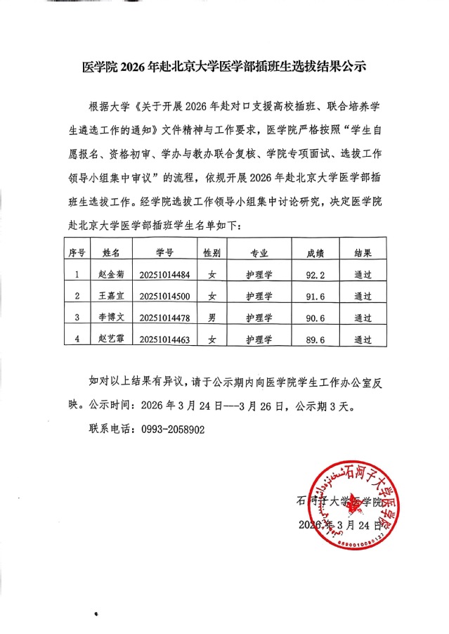 医学院2026年赴北京大学医学部插班生选拔结果公示