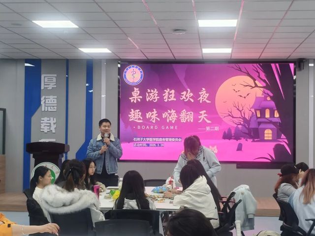 为进一步丰富石大学子课余文化生活,加强同学间的沟通与协作,营造积极向上、轻松和谐的校园氛围,2026年3月28日晚,医学院宿舍管理委员会精心策划的“桌游狂欢夜 趣味嗨翻天”第二期活动,在杏三A324活动室火热开启。活动一经推出便受到同学们热烈欢迎,大家踊跃报名、积极参与,现场气氛热烈、趣味十足,处处洋溢着青春朝气与欢乐气息。