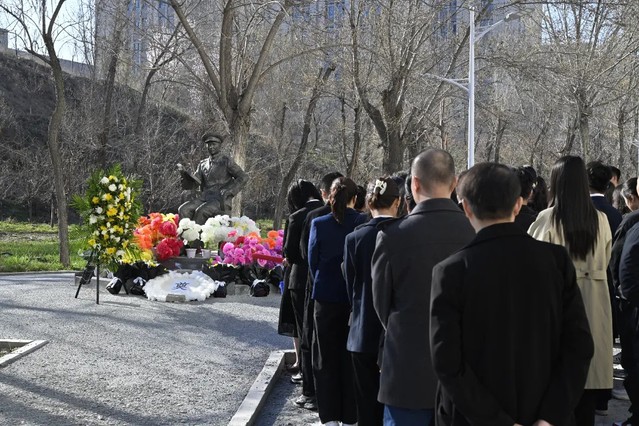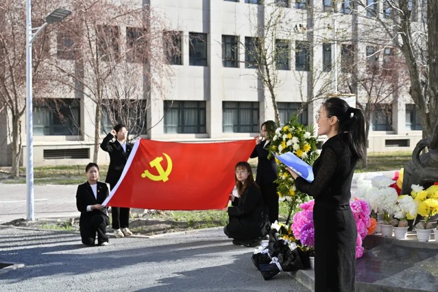 为缅怀革命先烈,传承红色基因,厚植爱国情怀,4月4日10时,医学院机关第二党支部联合学院各本研学生党支部在中区潘世征将军雕像前开展“追寻・2026・清明祭英烈”主题活动。医学院党委副书记雷建鹏,机关二党支部全体教师、全体辅导员及学生党员代表身着正装、佩戴党徽参加本次活动。