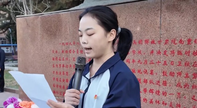 默哀毕,学生代表缓步走向王震将军雕像,敬献花篮,以鲜花寄哀思,向革命先烈致以崇高的敬意。