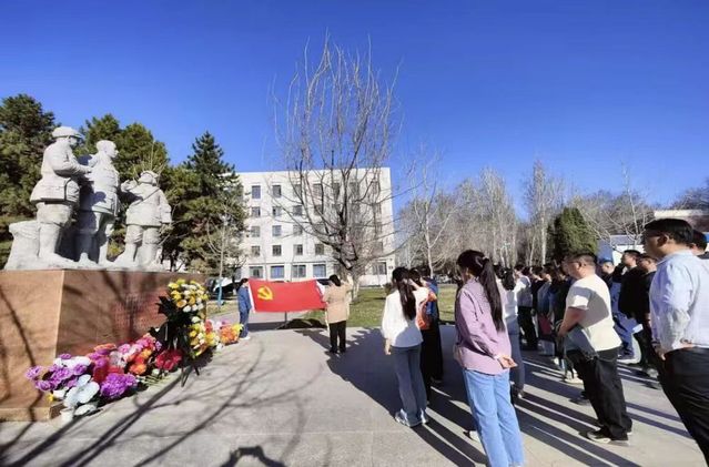 为深入贯彻落实兵团党委网信办《关于开展2026年“网络中国节·清明”主题活动的通知》及学校、学院相关工作部署,深切缅怀军垦英烈与戍边忠魂,传承红色基因,倡导文明低碳祭扫,强化师生使命担当,铸牢中华民族共同体意识,4月3日下午18时,医学院医学教学实验中心党支部联合公共卫生学院预防医学教工党支部,在医学院南区王震将军雕像前隆重开展“网络中国节·清明”主题党日活动,全体教师参加活动。