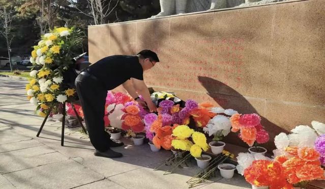 活动伊始,全体老师肃立默哀,低头追思,在静默中缅怀王震将军等军垦英烈的丰功伟绩,感悟如今幸福生活与教育事业发展的来之不易,寄托对先烈的深切哀思。默哀1分钟结束后,全体老师肃立行三鞠躬礼,全程保持安静肃穆,以最庄重的姿态表达对英烈的敬畏与缅怀。随后,医学院党委书记张青同志稳步上前,向王震将军雕像敬献鲜花,寄托全体党员对英烈的深切敬意。