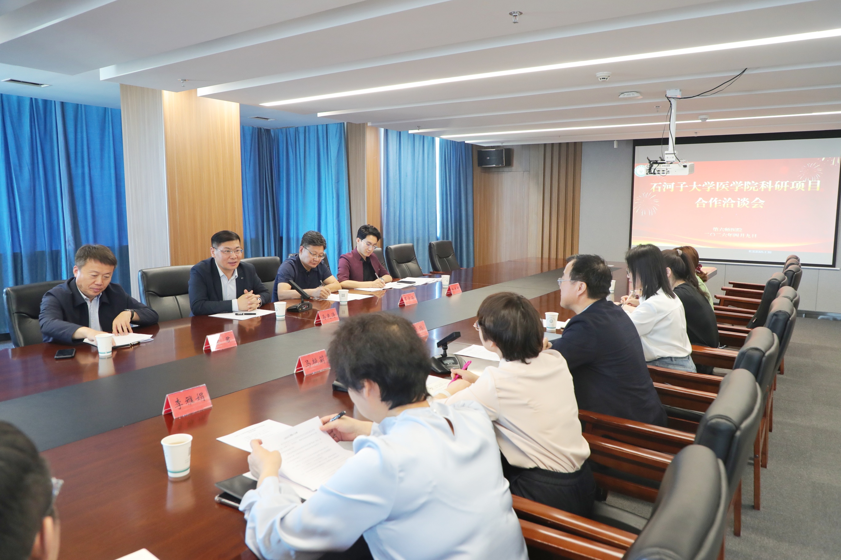 为深入落实兵团科技创新发展战略,稳步推动 2026 年度兵团各级各类项目落地见效,不断深化医教研协同发展,4月9日上午,石河子大学医学院党委副书记、院长马克涛带队,科研处副处长罗宏海、医学院党委委员、副院长张君一行,前往兵团第六师医院开展项目合作洽谈等活动,为校院科研协同发展注入全新动能。