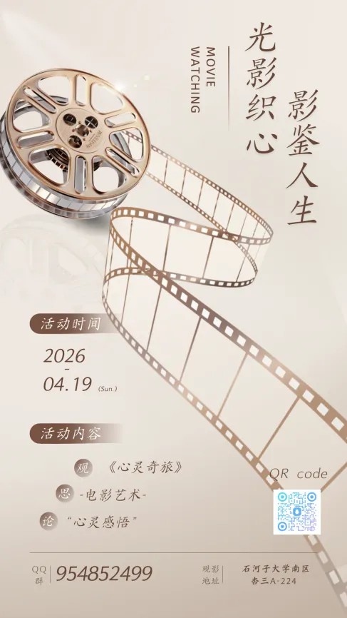 为了让大家在光影里探索自我、收获共鸣,在思想的碰撞中积攒成长的力量,我们特意筹备了本次“光影织心,影鉴人生”团体辅导活动!在这里,我们一起看电影、聊心声、共成长~
