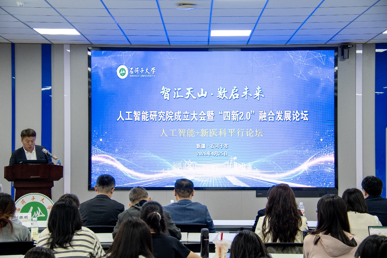 2026 年 4 月 25 日,石河子大学 “智汇天山・数启未来” 人工智能研究院成立大会暨 “四新 2.0” 融合发展论坛人工智能 + 新医科平行论坛暨石河子大学医学院2026年度第一期“医+X”创新沙龙,在医学院杏3楼-324报告厅成功举办。本次论坛聚焦人工智能技术与新医科建设的深度融合,汇聚国内顶尖医学与人工智能交叉领域专家学者,共同探索数智赋能医学教育、临床科研与健康产业高质量发展的创新路径,为兵团乃至新疆地区智慧医疗建设注入新动能。