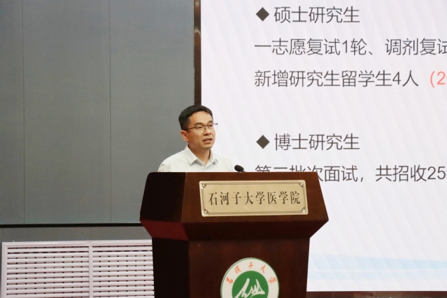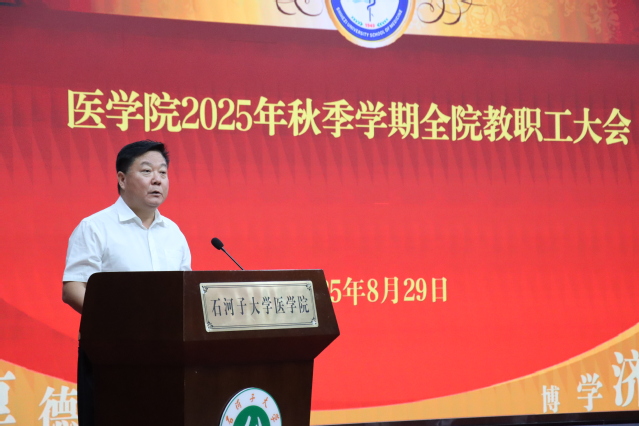 8月29日,医学院2025年秋季学期全院教职工大会在南区学术报告厅顺利召开。会议由党委副书记、院长马克涛主持,全体院领导班子成员参加会议。