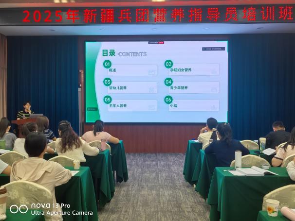 本次培训依托医学院国家级备案培训平台,构建“理论+实践+研讨”三维教学模式,覆盖四大核心模块。(1)基础理论强化:营养学原理、膳食配餐科学设计;(2)技能实操训练:人体营养评估技术、慢性病营养干预方案;(3)特殊人群管理:婴幼儿、老年人及慢性病患者营养健康问题应对策略;(4)社区实践应用:结合兵团基层需求,开展营养风险筛查与健康管理案例教学。特邀营养领域资深专家授课,确保内容兼具前沿性与实用性。