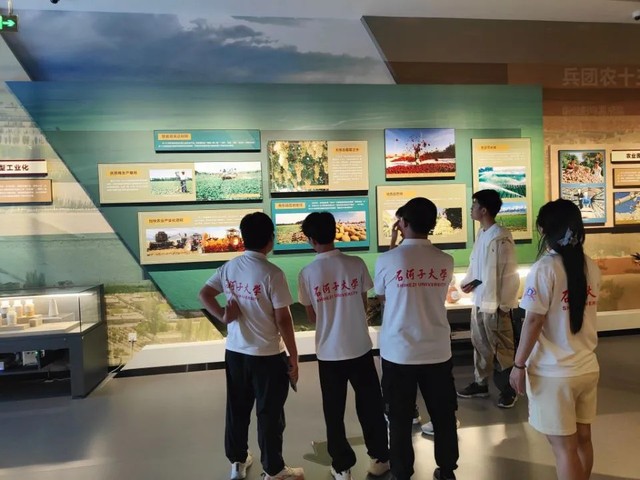 踏入博物馆,队员们立刻被馆内浓厚的历史氛围所感染。在讲解员的带领下,大家依次参观了各个展厅。一件件珍贵的文物、一幅幅泛黄的照片、一段段感人的故事,生动再现了兵团人从解放战争时期的金戈铁马,到屯垦戍边时期的艰苦创业,再到新时代开拓进取的奋斗历程。看到那些在艰苦环境下使用的劳动工具、破旧衣物,以及记录着先辈们战斗与建设场景的资料,团队成员们深刻体会到了老一辈兵团人“热爱祖国、无私奉献、艰苦创业、开拓进取”的伟大精神。