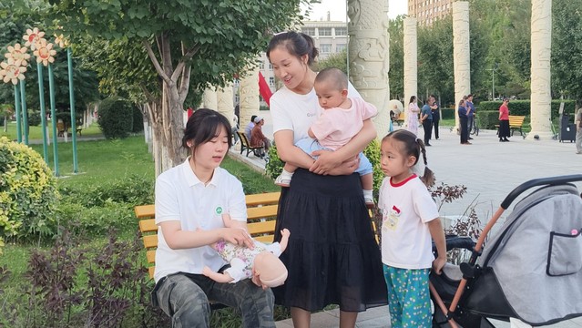 实践团在广场讲解婴幼儿海姆立克急救法