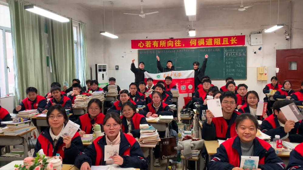 当我带着“赣韵青春知行队”进入江西省丰城九中的校门,眼前是熟悉的香樟树影,教学楼顶“崇德尚学”的校训依旧醒目。2月2日,带着石河子大学的队旗、礼品与满心期许,我踏上了这片承载着三年青春记忆的土地——这一次,我不再是怀揣忐忑的高三学子,而是作为返校宣讲志愿者,要向高三5班的学弟学妹们,讲述兵团故事,推介石河子大学,更要为他们即将到来的高考之路,注入一份温暖的力量。