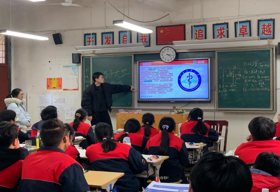 我从石河子大学的发展历史讲起,通过一张张实景照片在屏幕上展开。“学长,兵团的生活会不会很艰苦?”“石河子大学的王牌专业是什么?”同学们的提问接踵而至,我结合自己的求学经历,一一解答他们的困惑,从校园环境、学科优势讲到就业前景,更分享了大学生活里的精彩瞬间——图书馆的深夜灯火、社团活动的欢声笑语、实习实践中的成长蜕变。当说到石河子大学“明德正行,博学多能”的校训与丰城九中“崇德尚学”的理念不谋而合时,我看到不少同学若有所思地点了点头。