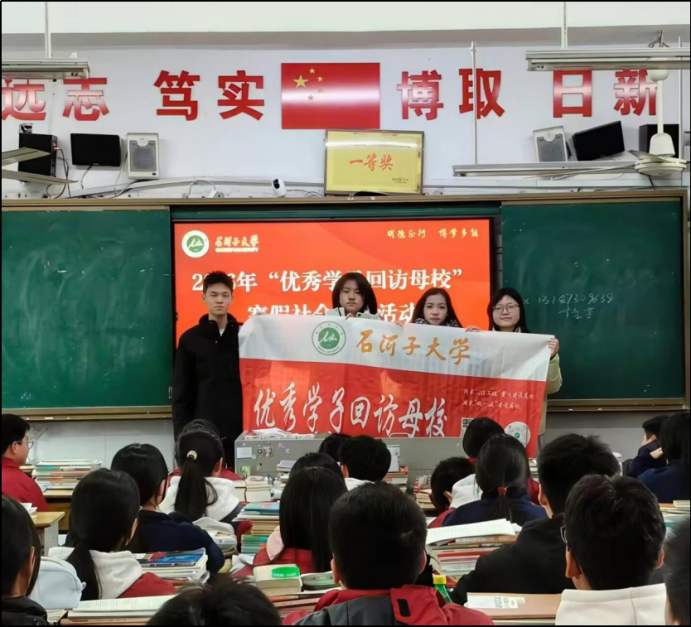 寒梅吐蕊迎新春,学子归乡谢师恩。寒假期间,石河子大学“湘亲湘爱队”积极响应学校“优秀学子回母校”社会实践活动号召,带着石河子大学的朝气重返母校衡南县第一中学,以学子之名,怀感恩之心,愿为学弟学妹架起逐梦桥梁。
